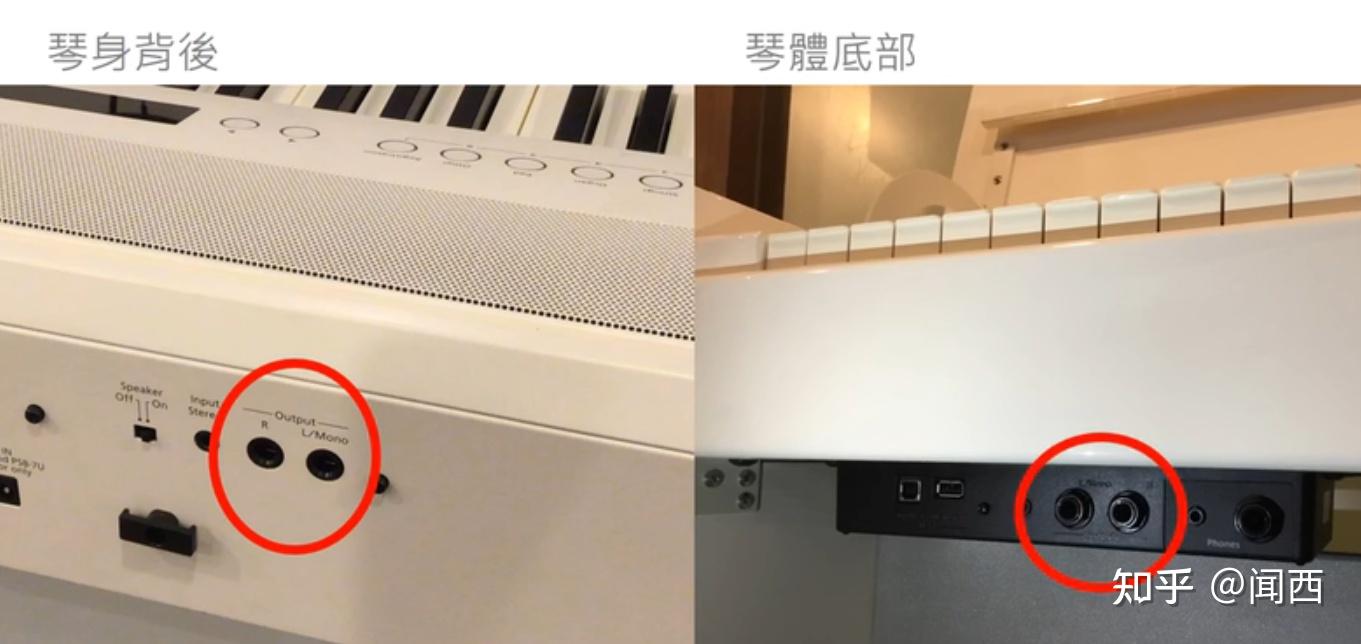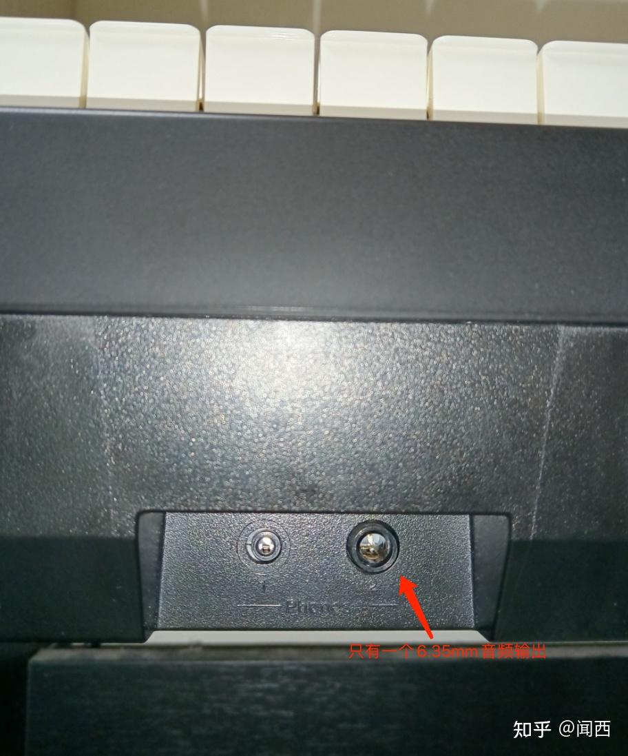 有两个6.35mm音频接口的电钢琴,一般位于琴身背后或底部