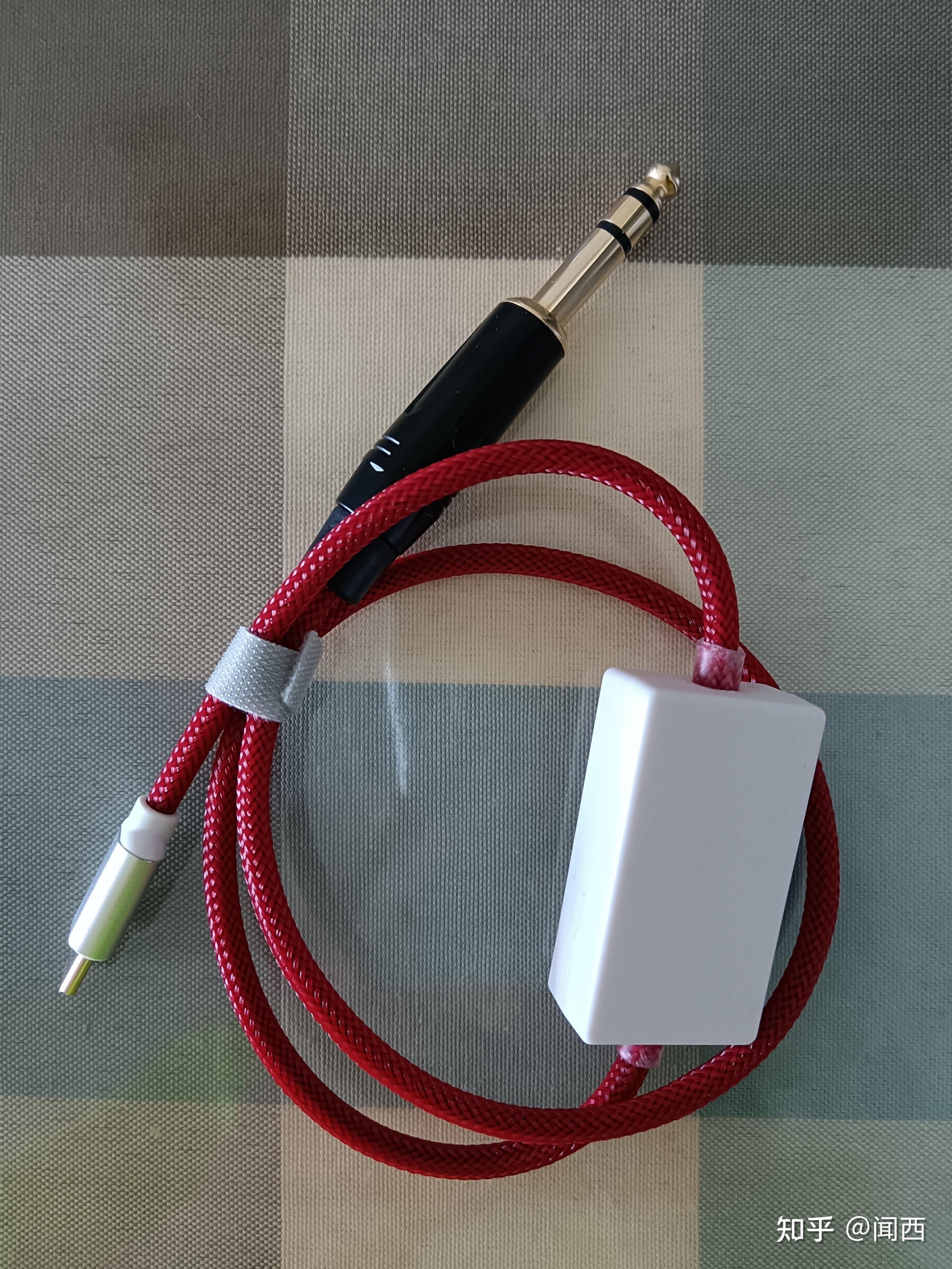 我买到的对录线长这个样子,即一头是6.35mm的双声道头子,另外一头是Type-C,中间那个大白盒子是降噪用的: